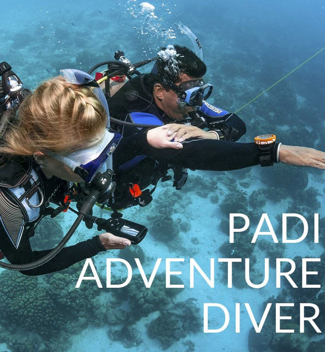 After your PADI Adventure Diver certification you can take the next step by completing two more adventure dives. If you've completed five total adventure dives that include deep and navigation, you're an PADI Advanced Open Water Diver.
