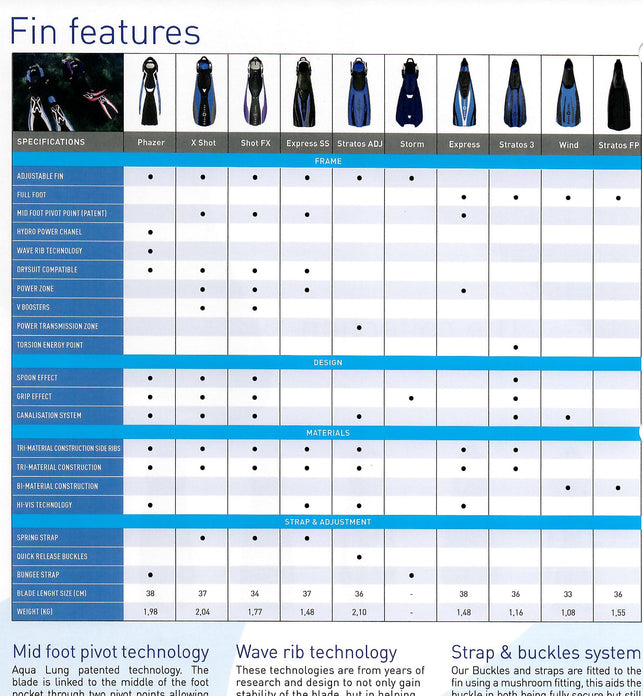 - A new spring strap offers a soft heel pad along with Aqua Lung's own proprietary buckles